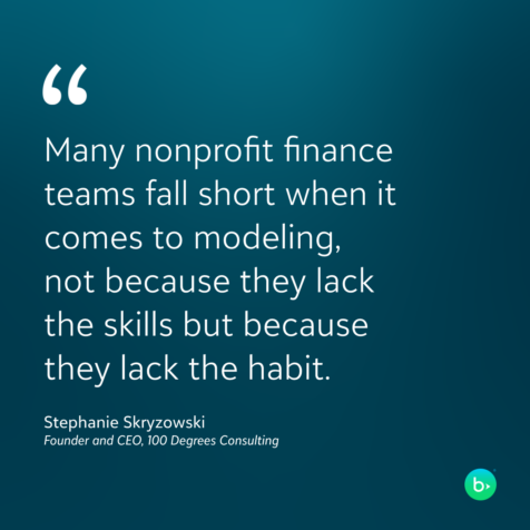 Many nonprofit finance teams fall short when it comes to modeling, not because they lack the skills but because they lack the habit. Most organizations create an annual budget, get it approved by the board, and then don’t look at it again until next budget season.